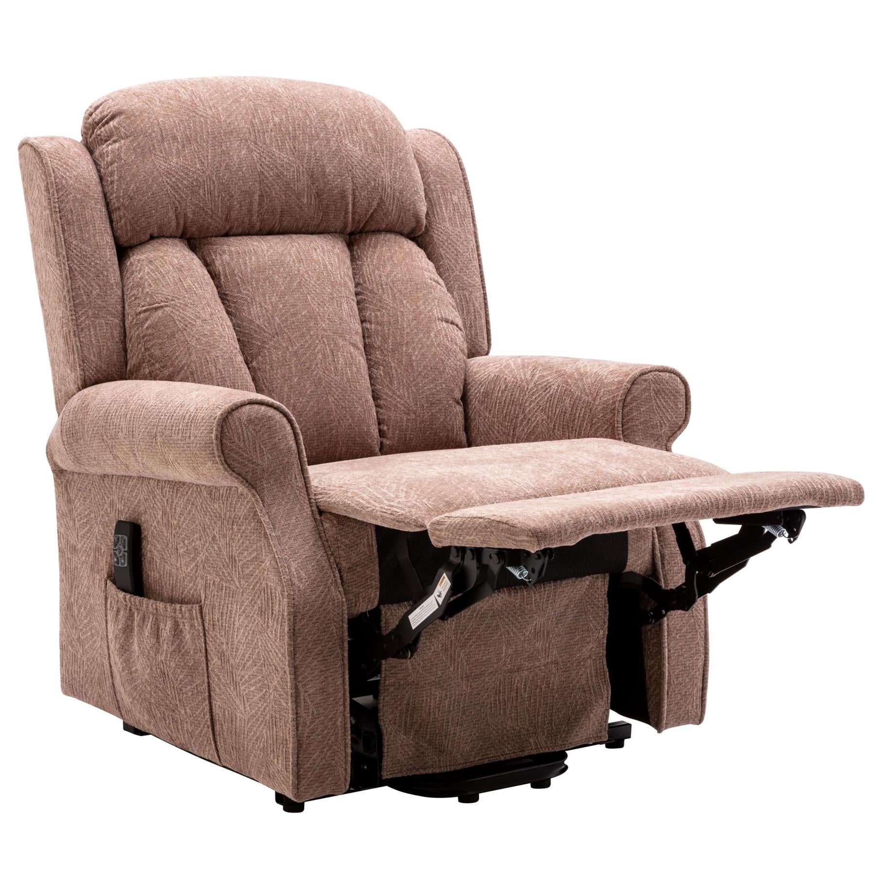 The Darwin dual motor riser recliner chair utilises two independant motors giving the user more control of their resting position. The footrest and back recline can be operated individually allowing your feet to be in a fully elevated position without the back reclining. Available in a range of colours this rolled arm modern design features durable upholstery and a choice of leather or fabric finishes. Generous padding completes the look and offers increased comfort.
