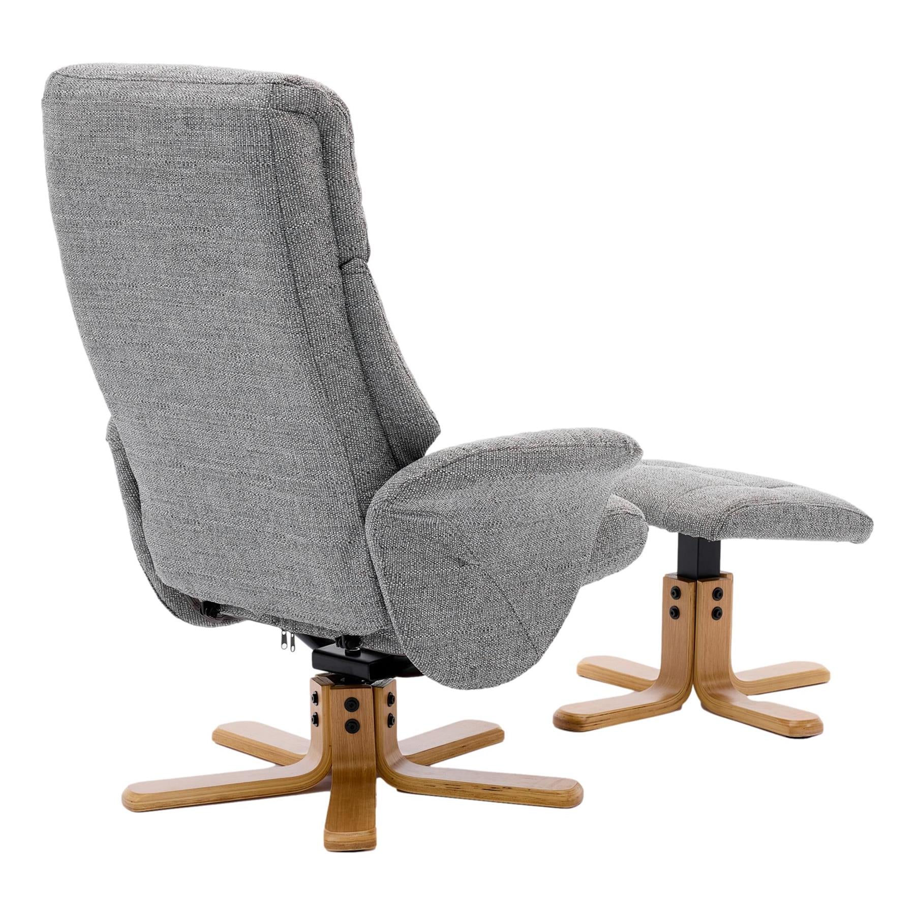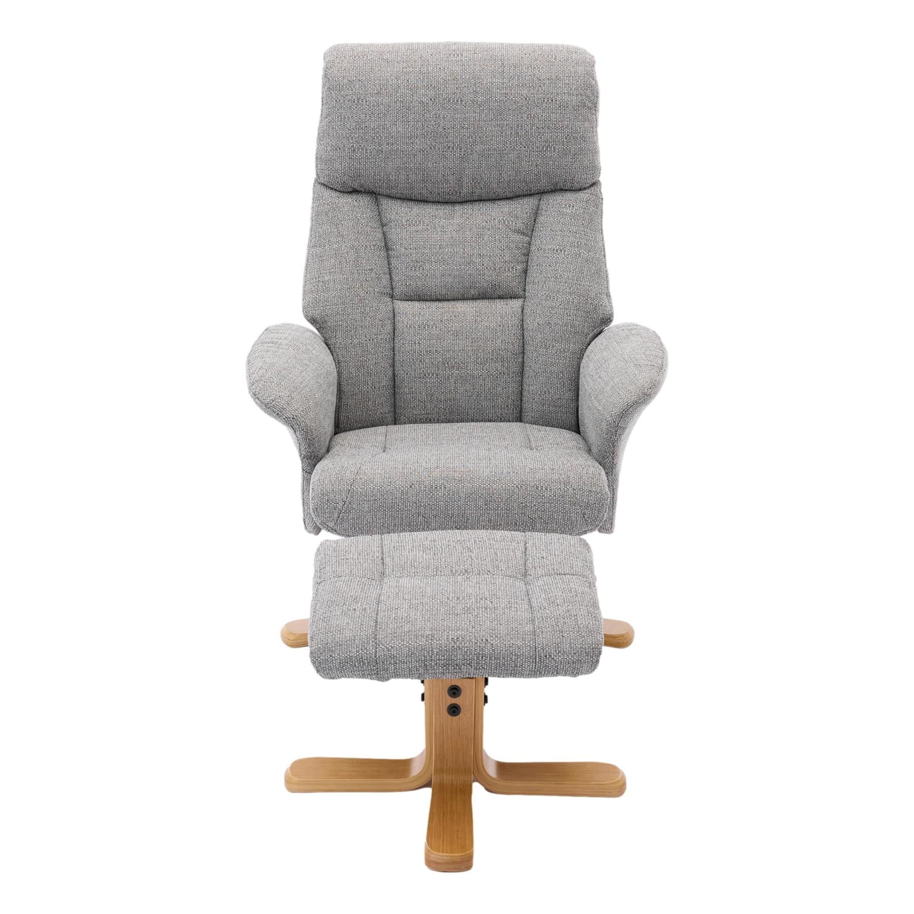 The Giza is a beautiful modern style swivel recliner chair with matching footstool. Available in a choice of faux leather or fabric upholstery this durable finish is sure to suit a wide variety of interiors. A comfortable padded seat ensures the user can relax in comfort.