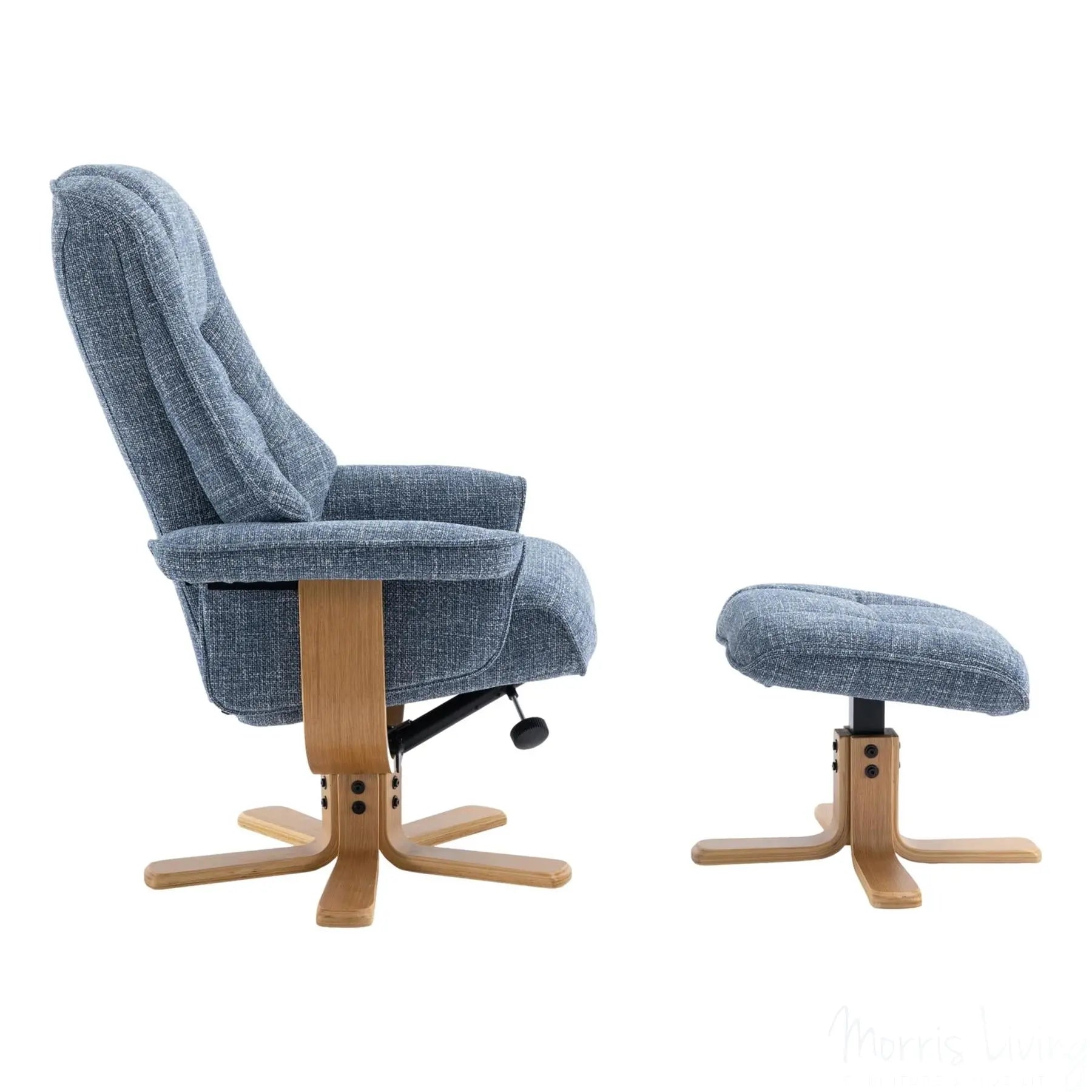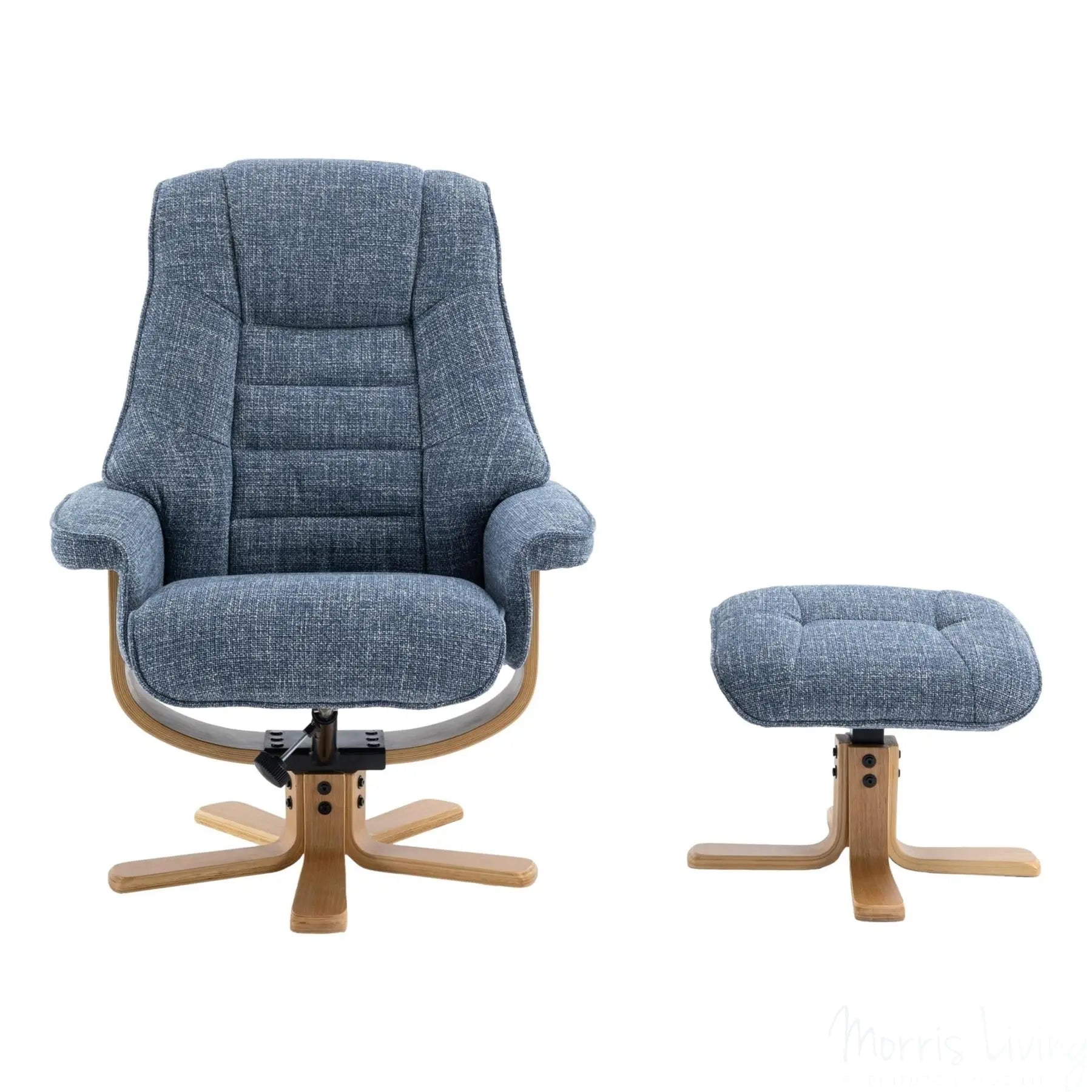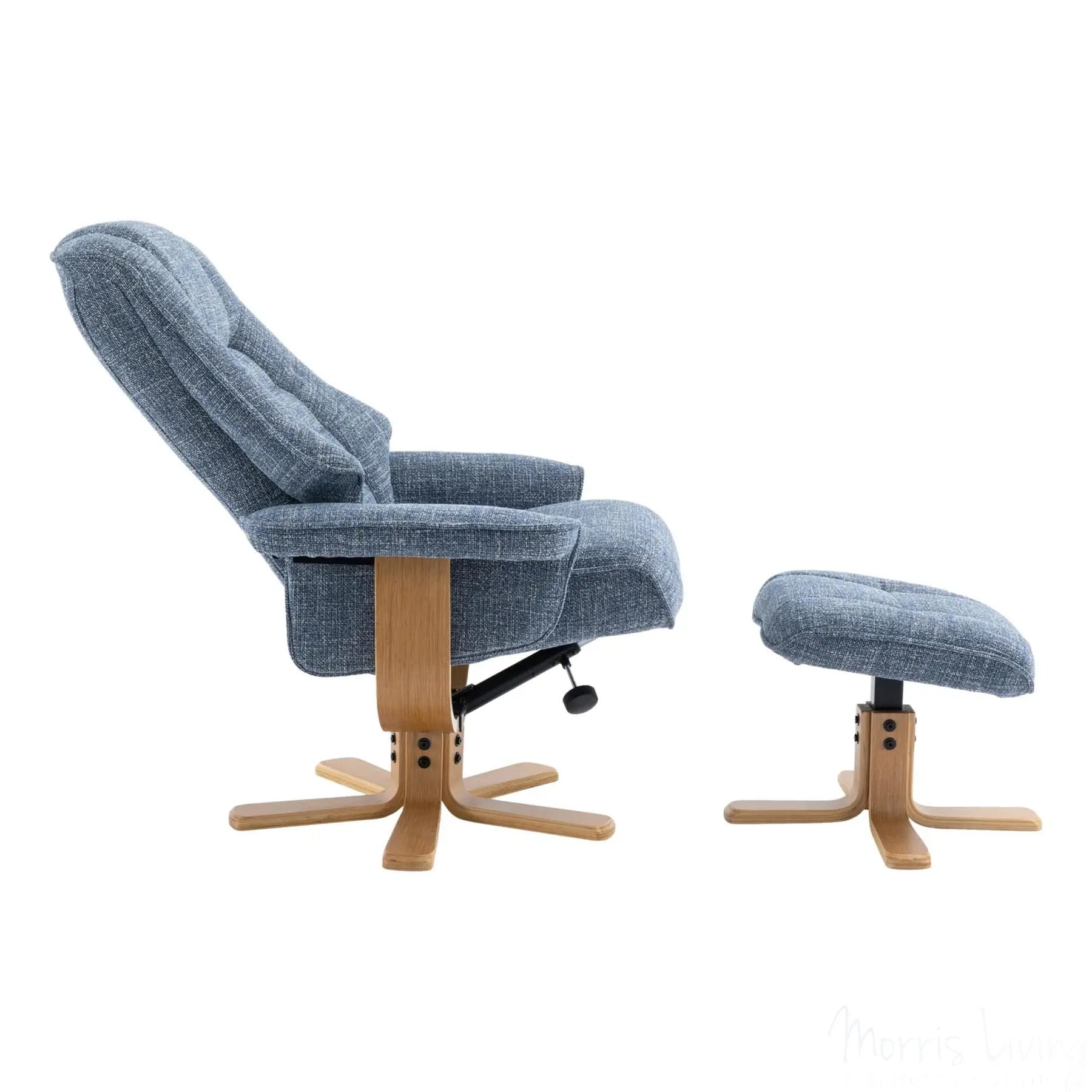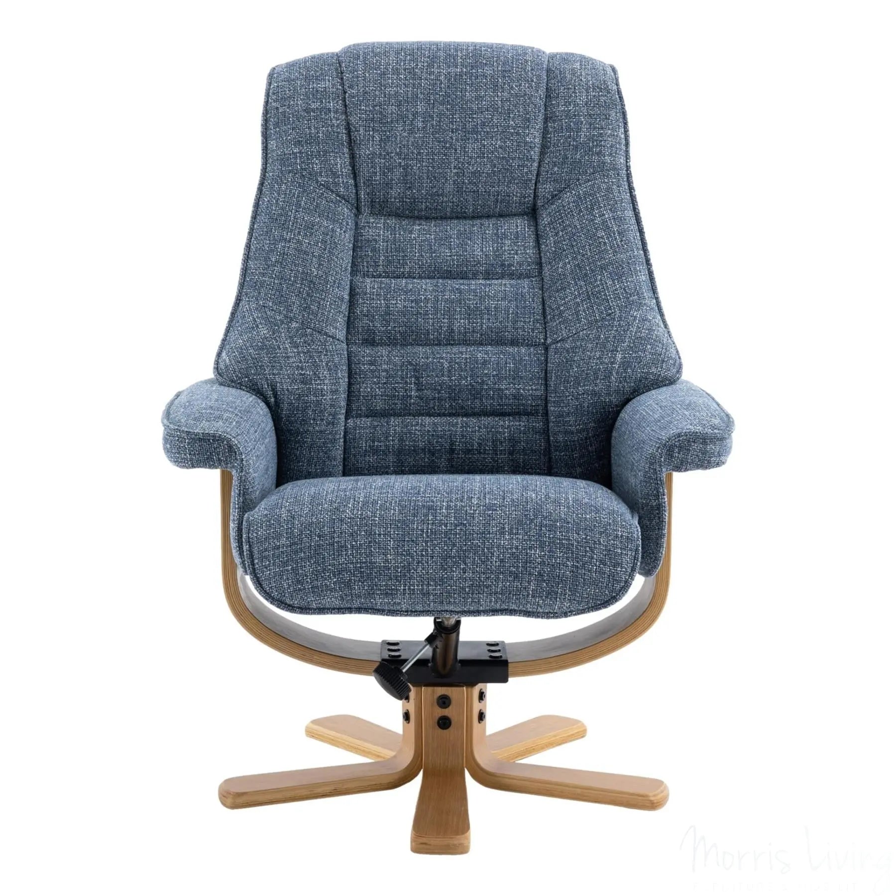 The Sardinia also boasts an easy recline mechanism and 360° swivel, providing ultimate comfort from head to toe, and with its mid oak star base, this chair adds a touch of sophistication to any room.